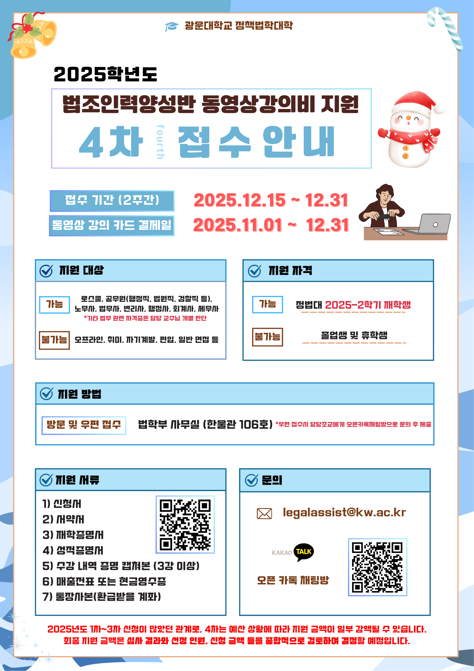 2025학년도 정책법학대학 법조인력 양성프로그램 동영상 강의비 (4차) 지원 안내